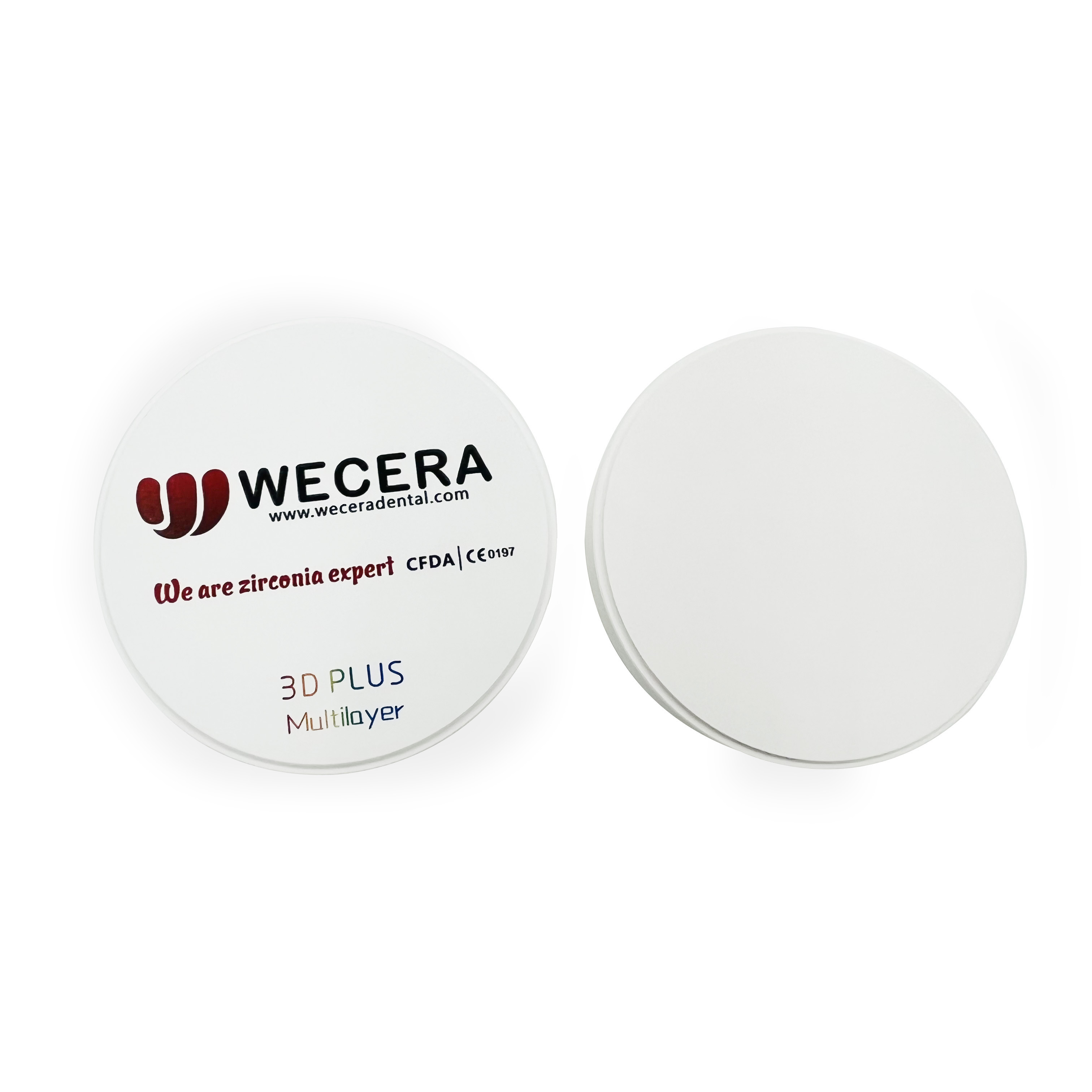 Wecera 3D plus mehrschichtigen Zirkoniumdioxid-Block wird von biologischem Nano-Zirkoniumdioxidpulver 100% von Tosoh mit kalter Fertigungstechnik Isostatic Drückens, es ist das natürlichste Zirkoniumdioxid im Markt, es ändert Farbe, Stärke und Durchsichtigkeit allmählich von zervikalem zum schneidenden Teil bei einer Zirkoniumdioxiddiskette gemacht.