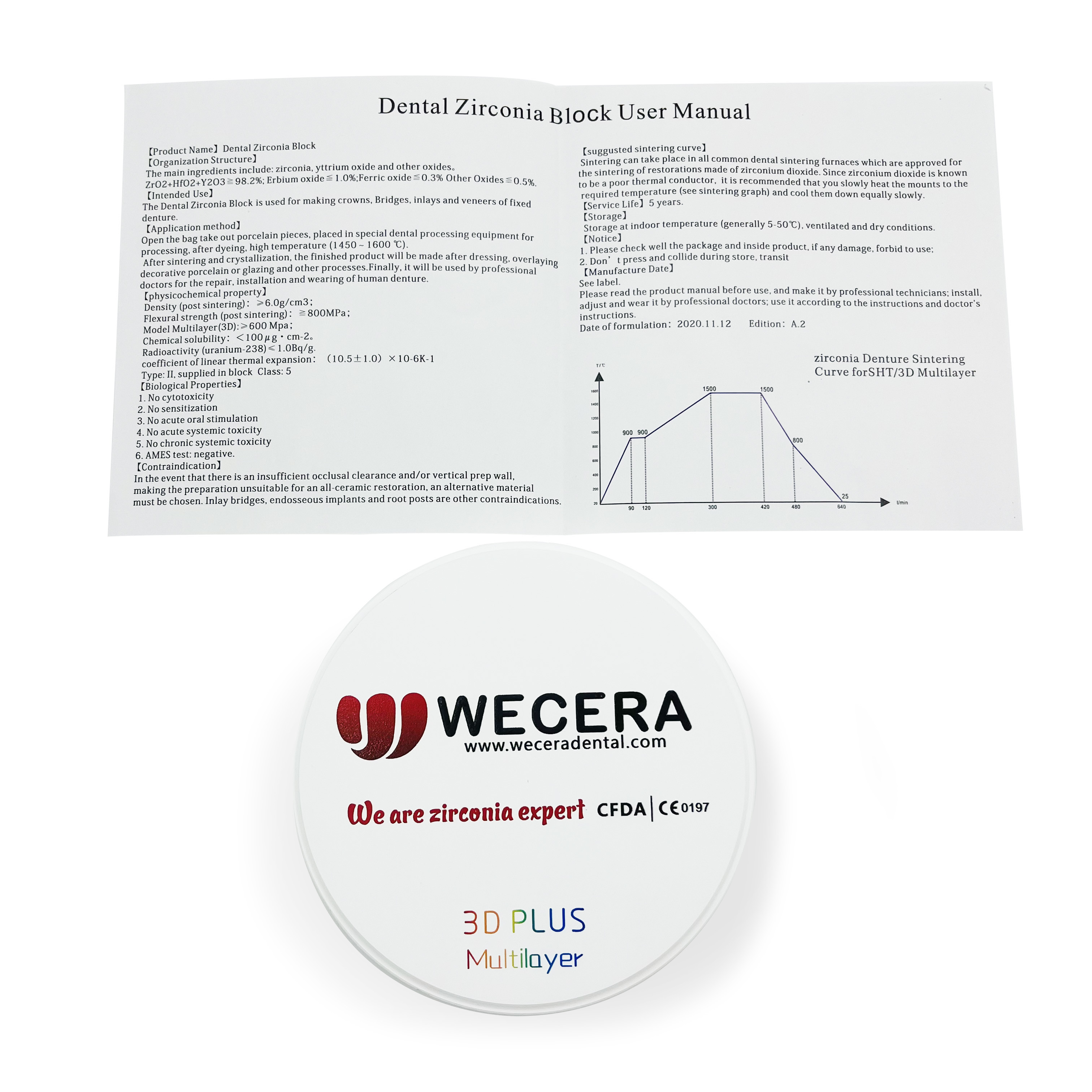 Es wird eine 6-schichtige mehrschichtige Struktur entworfen, die Farbe, Durchsichtigkeit und Festigkeit beinhaltet.mit einem Durchmesser von mehr als 10 mm,Diese Eigenschaften machen es perfekt für die Herstellung von vorderen und hinteren monolithischen Kronen sowie Brücken mit maximal 10 Einheiten.