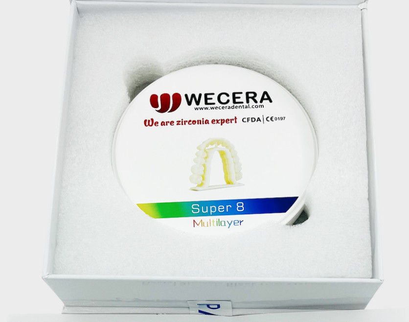 Insgesamt ist die mehrschichtige Zirkonoxidscheibe Wecera Super 8 eine ausgezeichnete Wahl für Zahnspezialisten, die einen zuverlässigen, zertifizierten und leistungsstarken Dentalzirkonoxidblock suchen, der sich nahtlos in moderne CAD/CAM-Systeme integriert, um herausragende Patientenergebnisse zu erzielen.